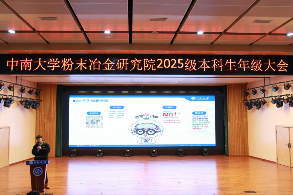 为加强学风建设与安全教育,2026年1月13日,中南大学粉末冶金研究院于毓秀楼和声堂组织召开了2025级本科生年级大会。