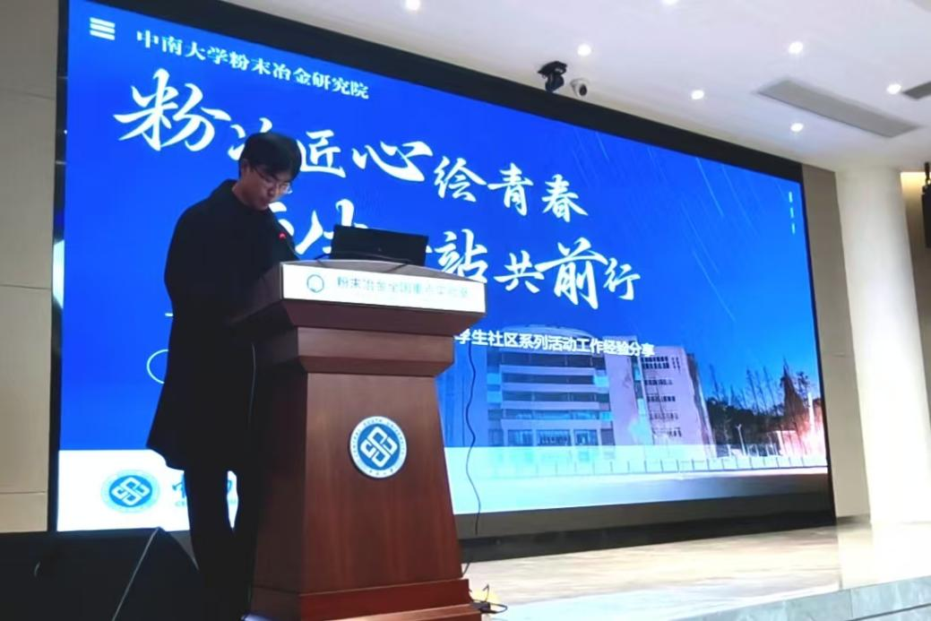 其中,粉末冶金研究院学生会执行主席王炳珺重点介绍了研究院“一站式”学生社区的整体建设思路与建设成果。他以“一室一厅二堂三廊六坊”功能布局为例,系统阐述了我院以师生沙龙、科普教育基地、学风建设平台等多元板块为支撑,打造全方位育人体系的具体举措与阶段性成果。