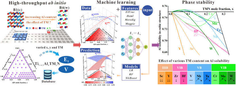 图5. 基于高通量第一性原理和机器学习分析TiAlTMN涂层的立方相稳定性