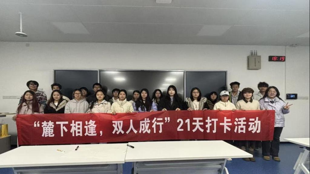 本次活动以“麓下相逢”为主线,设计了从“山脚-初行”到“山腰-共攀”直至“山顶-同心”的全过程双人打卡任务。在21天的打卡过程中,各组搭档同心协力,在学业上互助、在生活中同行,真正实现了从“打卡搭子”到“成长伙伴”的转变。