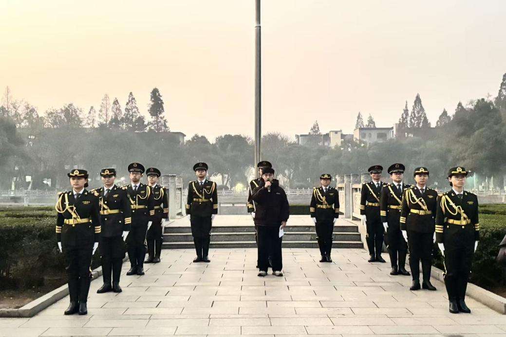 2025年12月8日清晨,中南大学国歌领唱团粉末冶金研究院分团在岳麓山校区升旗台前参加升旗仪式,以饱满的青春热情唱响国歌。
