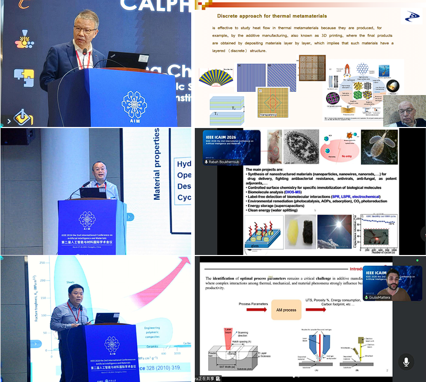 3月27日—29日,第二届人工智能与材料国际会议(ICAIM 2026)在中南大学岳麓山校区三一大楼603报告厅举行。本次会议由中南大学主办,中南大学粉末冶金全国重点实验室、粉末冶金研究院、湖南大学、中国石油大学(华东)及爱迩思出版社(ELSP)协办。中南大学张利军教授、中国石油大学(华东)都时禹教授担任大会主席。会议聚焦人工智能与材料科学的深度融合,设主旨报告、特邀演讲及多场专题分论坛,为跨学科交流与合作搭建了高水平平台。