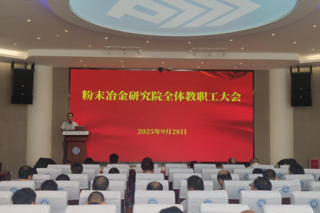 2025年9月28日下午,粉末冶金研究院在三一大楼603会议室召开全体教职工大会,部署推进新学期重点工作。研究院党委书记王德志,院长张斗及院领导班子成员出席,大会由党委副书记黄曦主持,研究院全体教职工参加。