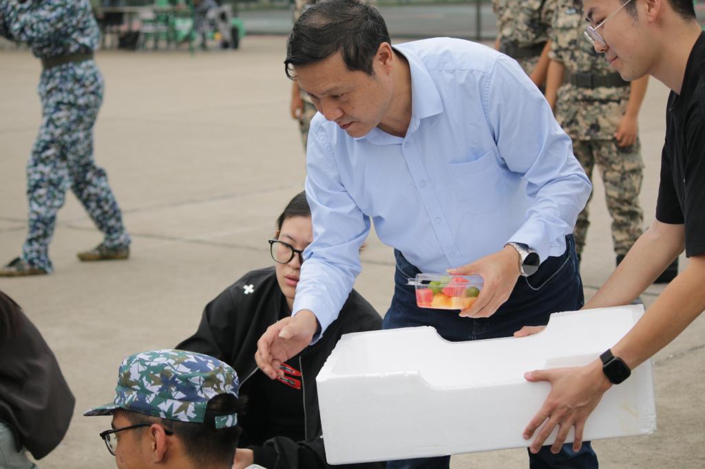 随后,到场领导老师向承训教官和参训学生逐一发放慰问品。清凉的饮品和可口的水果,既传递着研究院大家庭的温暖,也饱含着对全体参训人员的鼓励与肯定。同学们接过慰问品,脸上洋溢着喜悦与感激,随后通过精心准备的文艺节目,向领导老师展示了新生们的蓬勃朝气,也为紧张的训练生活增添了一抹亮色,赢得现场阵阵掌声。