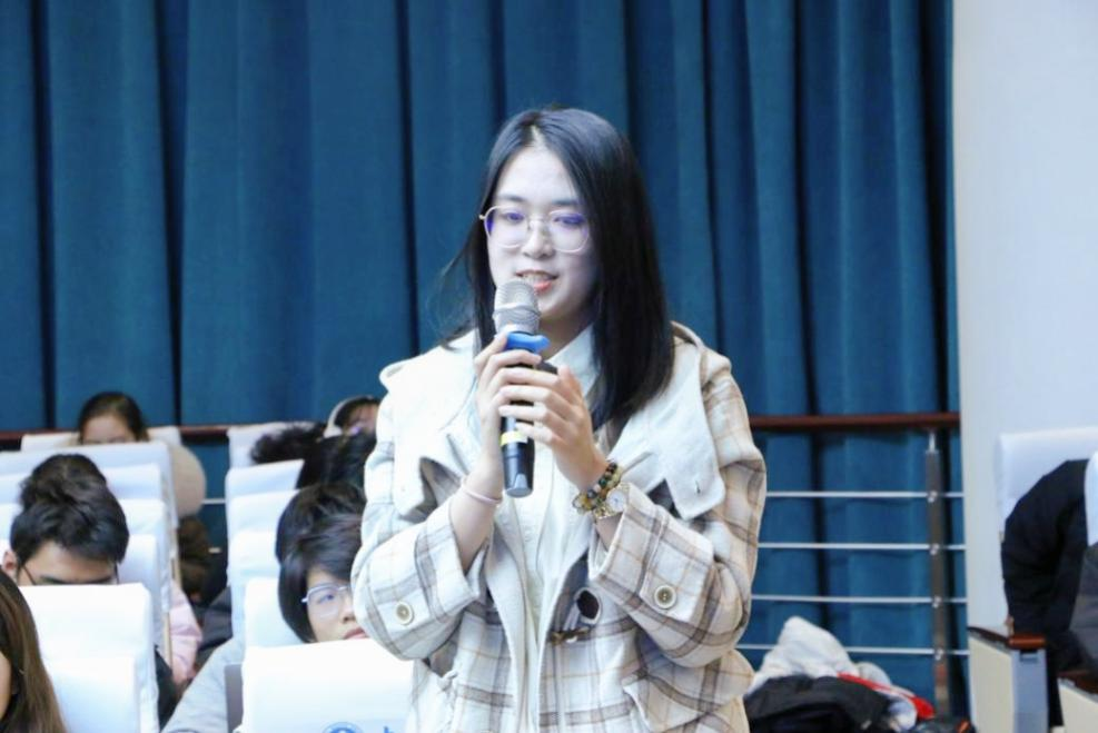 在互动交流环节,朱泓瑜、崔译文、陈思璇、马奥斐等同学围绕专业学习、科研入门、行业前景、能力培养等话题踊跃提问。三位校友结合各自实践经验与人生感悟给予了细致而诚恳的建议,现场气氛热烈。