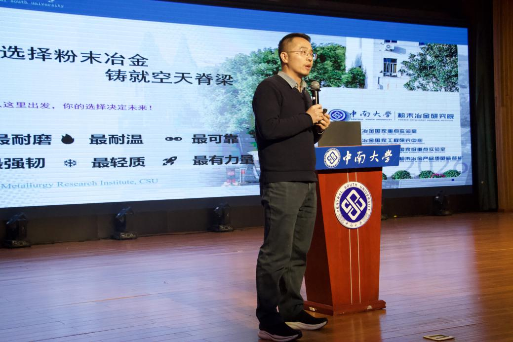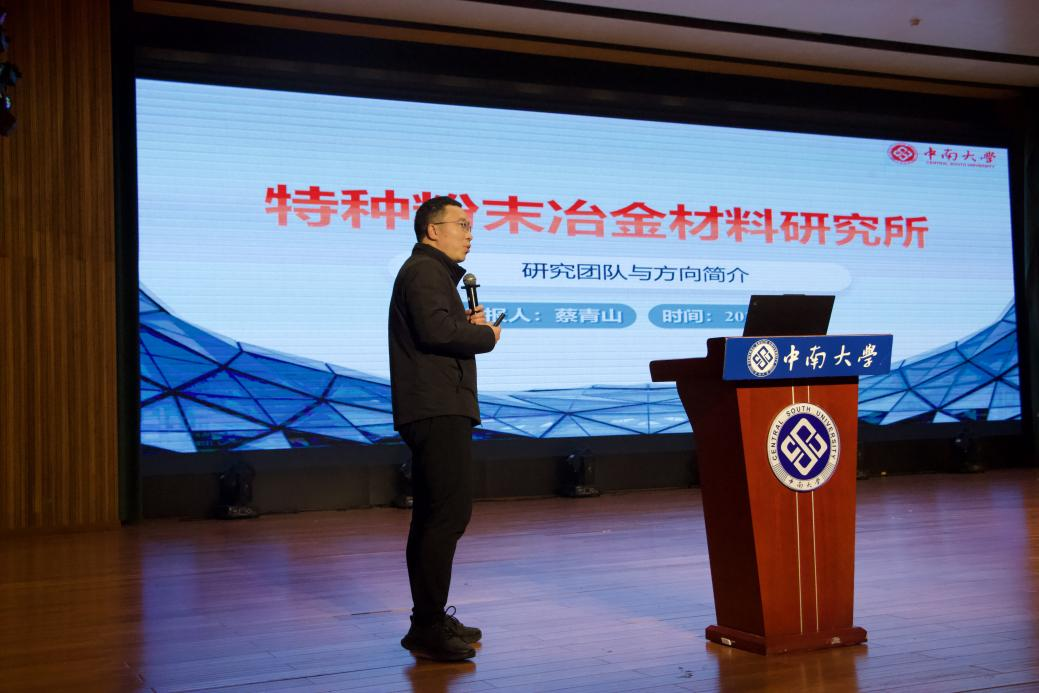 随后,特种粉末冶金材料研究所副所长蔡青山教授详细介绍了研究所的研究方向与代表性成果,他讲解了特种粉末冶金材料在航空航天等国家重大工程中的关键应用,并结合研究所近年来的科研进展,帮助同学们系统认识该领域的学术前沿与产业需求。