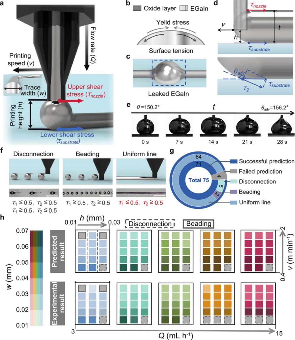 图 3 镓铟合金(EGaIn)液态金属电极电路的打印工艺机理分析与参数优化