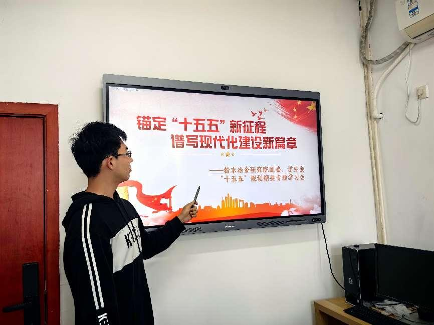 2026年3月25日,粉末冶金研究院学生会办公室在三一大楼303室组织召开了“十五五”规划纲要专题学习会,院团委、学生会全体学生干部参会。会议由院学生会执行主席王炳珺主持,旨在引导研究院学子深入理解“十五五”规划精神,明晰个人成长方向。