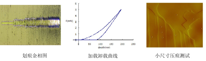 压痕测试仪(UNHT+MCT)能够测量软基、硬基、脆性、延展性等几乎所有类型材料的硬度以及弹性模量等性质。其中UNHT载荷范围25uN-50mN,热漂移0.008nm/sec可实现小尺寸测量,MCT载荷范围50mN-30N可实现大尺寸测量。划痕测试仪器(MST)载荷范围30mN-30N ,专门用于定量测定薄膜材料的机械性质,如膜基结合临界载荷、涂层失效形式以及基体变形尺度等。